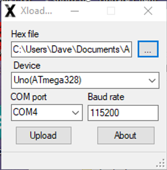 To upgrade the Autoshade controller software to the latest version V3.25, download the file XloaderV325.zip below and extract it to your Desktop folder. This will create a new folder called XloaderV325 which contains a number of files that will allow you to make the upgrade. Connect your PC to the Controller using a standard USB (tyoe A to B) cable. From the desktop, open the new folder XloaderV325 and double click the file marked Xloader.exe. This will execute a small loader program shown in the figure below. Select the hex file called MyShadesV325.ino.hex as the hex file, then select Uno(Atmega328) as the Device. Select the COM port which should appear when the Controller is connected with the USB cable and press Upload. After uploading, which should take a couple of seconds, the Controller will reset and display the new version number V3.25