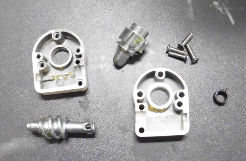 If this does not work, you can decrease the friction inside the worm gear by removing a spring. To do this remove the 4 screws on the worm gear housing and carefully note the position of the gears and washers inside. Then disassemble the worm gear.