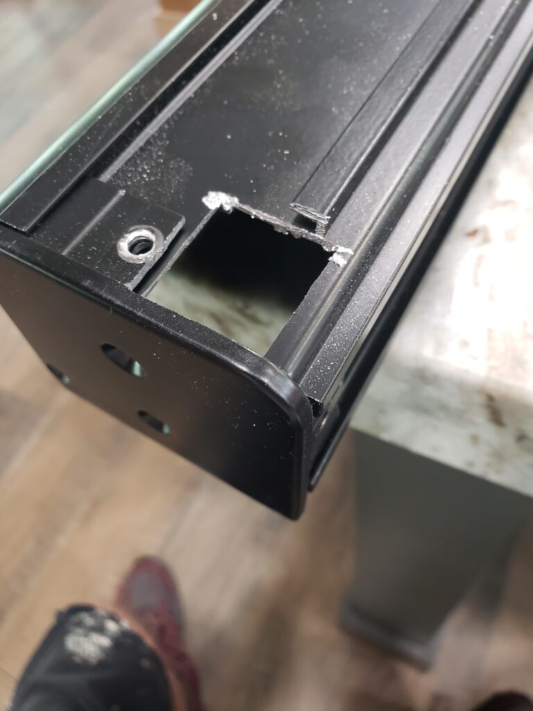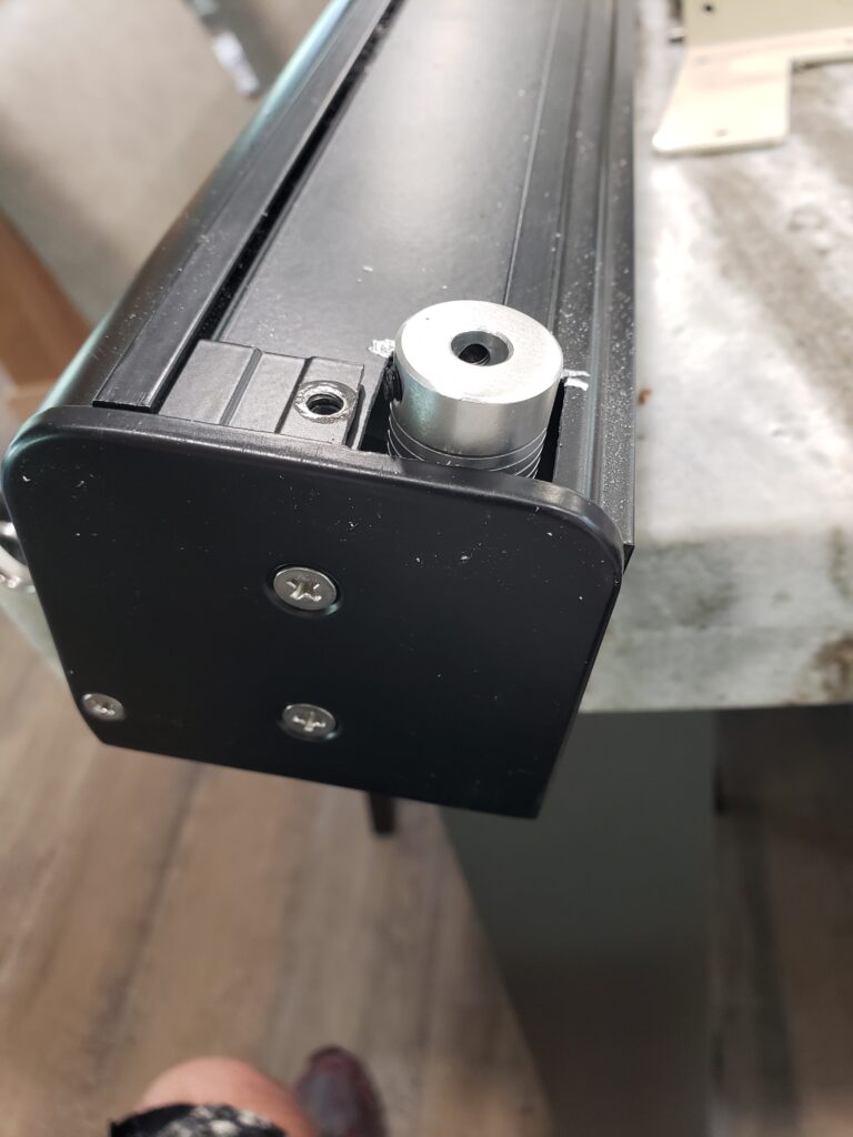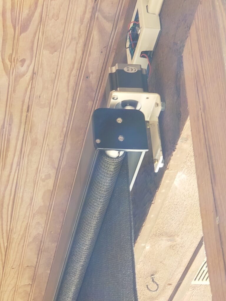 The valence shade is mounted on a 3/4″ spacer board, to pull it away from the facia board, then the bracket with the coupler is mounted independently directly to the facia. I used spacers to mount the bracket so I could align the coupler properly.
